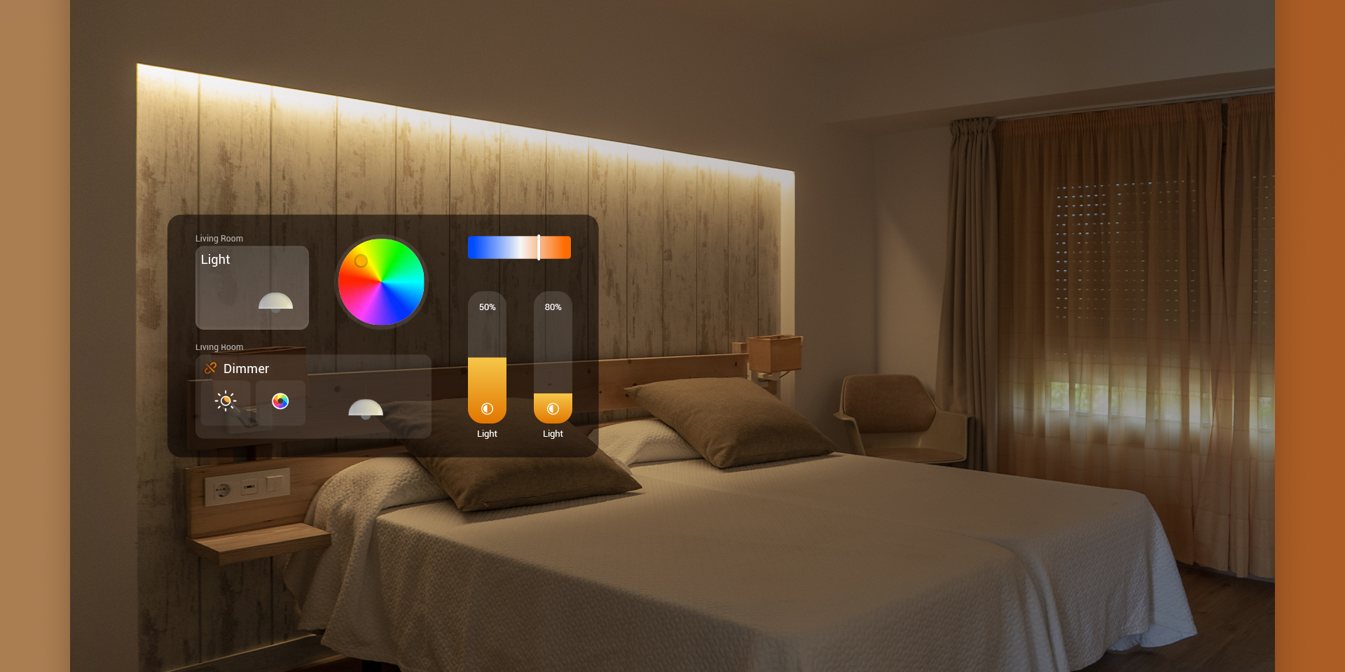 temperature settings. Curtains open automatically to